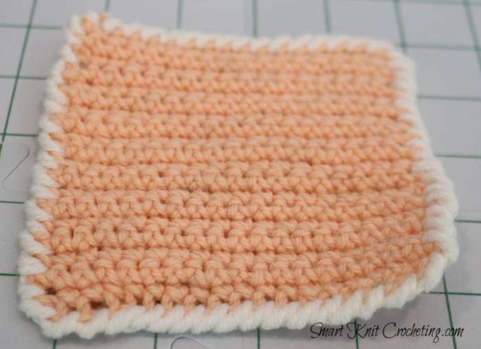 Work sc in each sc crochet to the end of row. Turn and Ch 1. Work enough rows to create a square swatch.