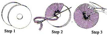 Step 1. Make two circles of the cardboard. Diameter of each circle is equal to the diameter of the pompon. Cut a hole in the center of each circle. Its diameter depends on the yarn thickness.