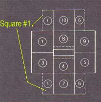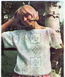 This top is made of squared motifs which are sewn together accordingly to the layout shown below. (Some good ideas about joining motifs can be found at Crochet a Doily page.)