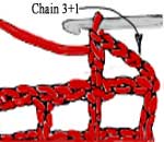 Instead of turning chain work 3 + 1 chains. Crochet one double crochet into the double crochet of the previous row. This way a triangle mash will be formed instead of the rectangular. Continue according to the stitch pattern.