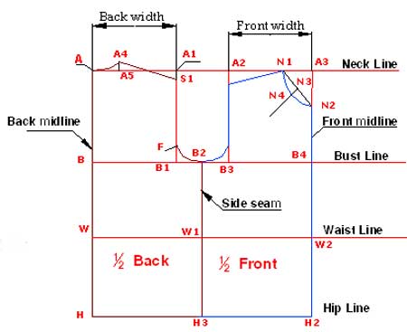 Mirror the line FB2B3 about a vertical line "Side seam".